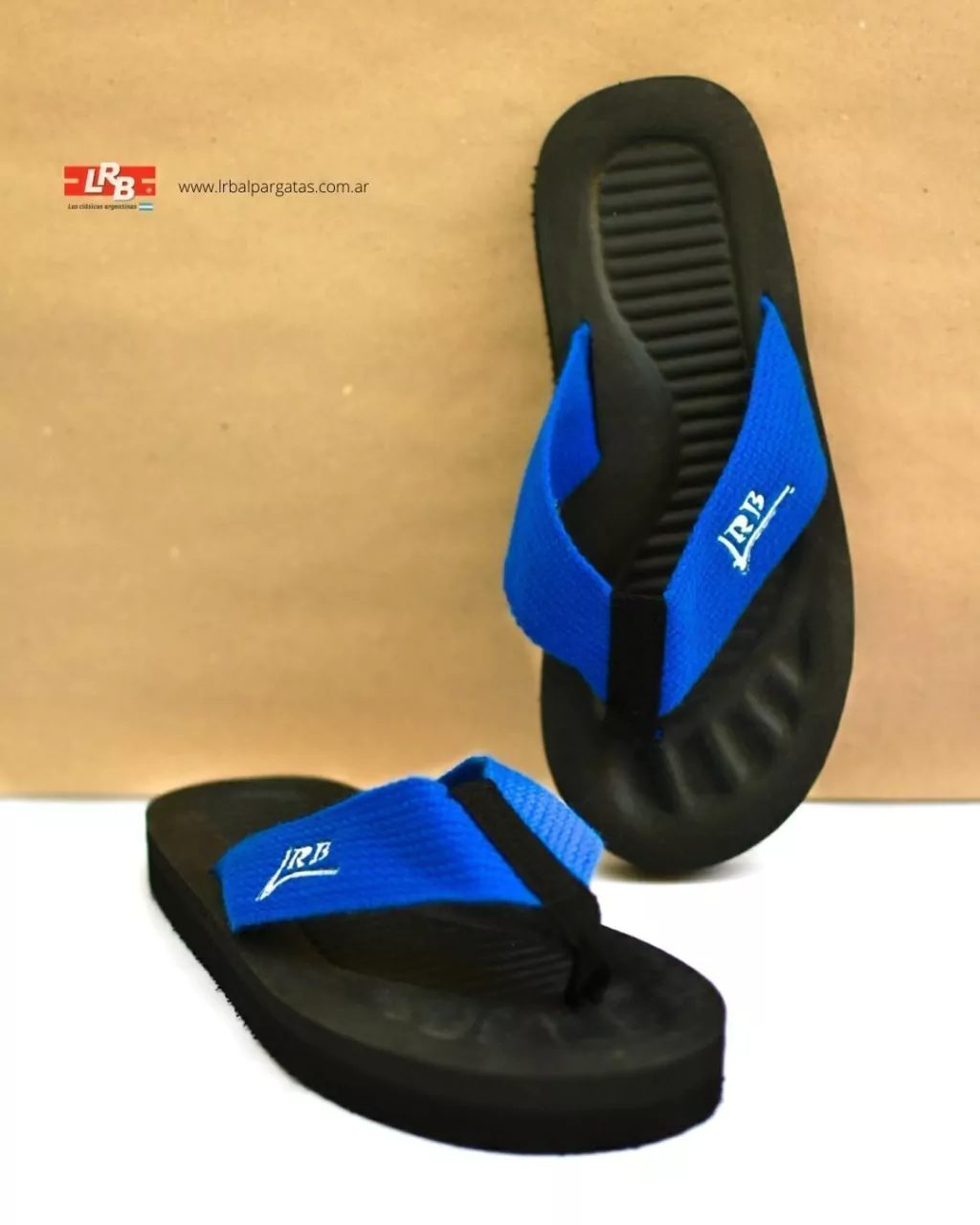 Realizada con suela de goma eva termoformadade 22 a 25 mm, cinta de algodón y poliéster de 4 cm.