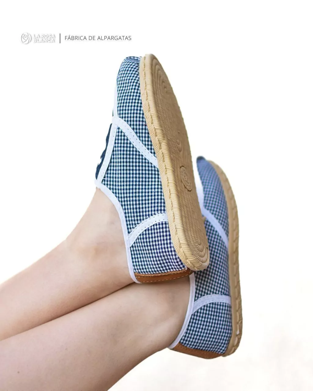 Alpargata acordonada zapatilla. Realizada en lona de cuadros pequeños, combinada con refuerzo jeans.Detalle de cuero natural en talón.
